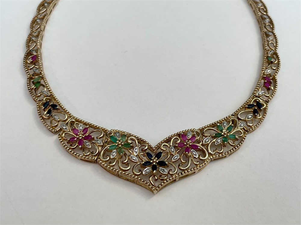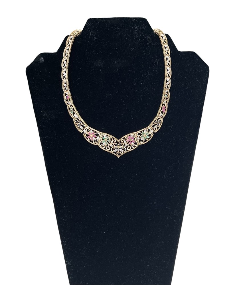 Gemstone Statement Necklace, Gold Over Sterling ~ 44.9 grams
