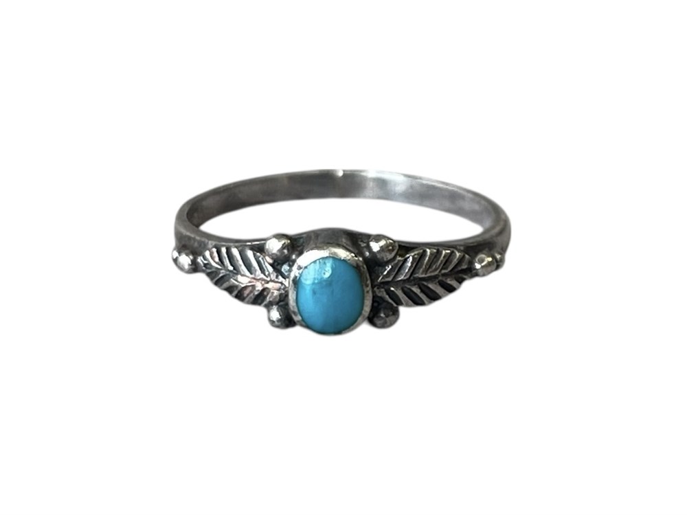 Petite ring with small turquoise stone. Marked: 925