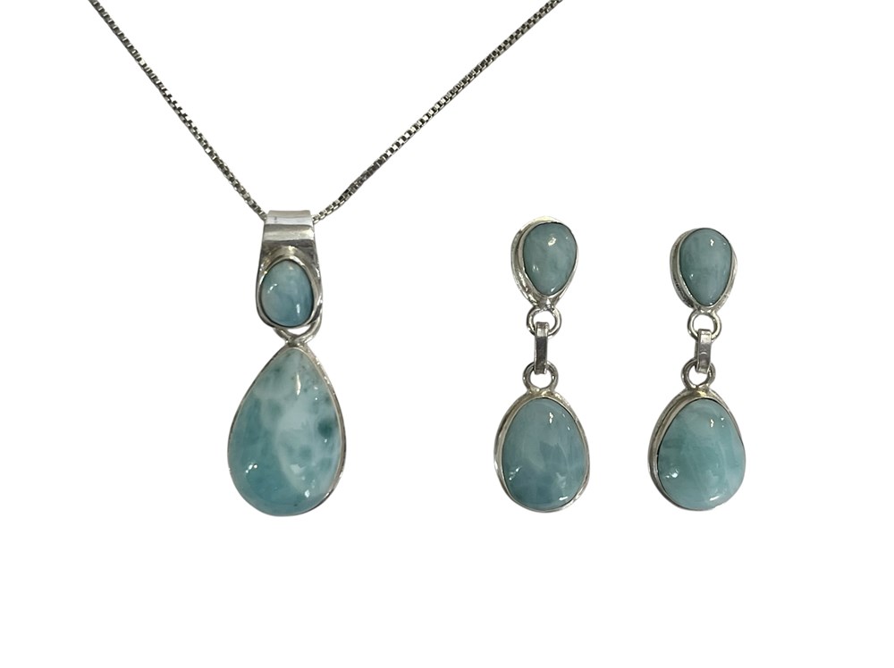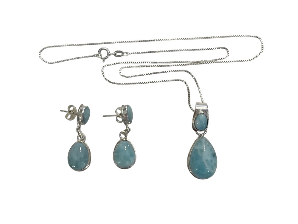 Larimar Sterling Silver Necklace and Earrings ~ 11.2 grams