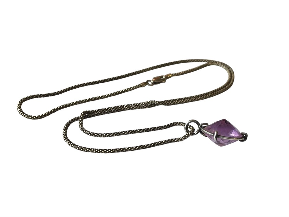 Danecraft 24" Sterling Silver Chain with Pink Pendant ~ 4.6+ grams