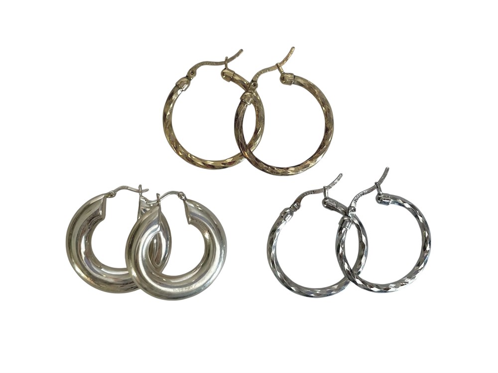 3 Pairs Sterling Silver Hoop Earrings ~ 15.1 grams