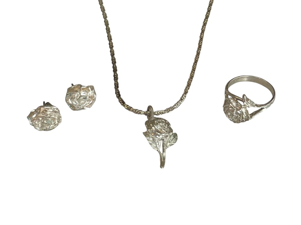 Roses Sterling Silver Jewelry Set ~ 12.4 grams