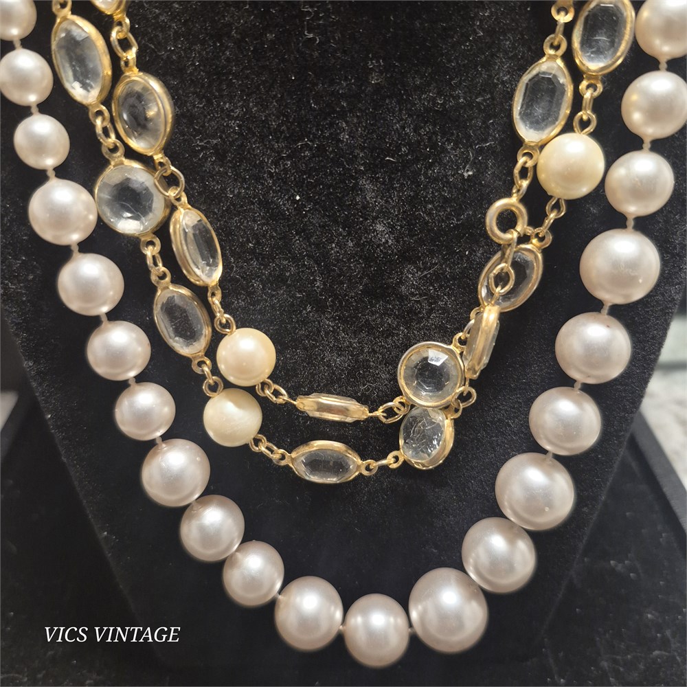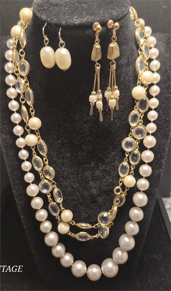 vintage Necklaces Pearls & Pearls w/ glass ~ 2 sets of Earrings