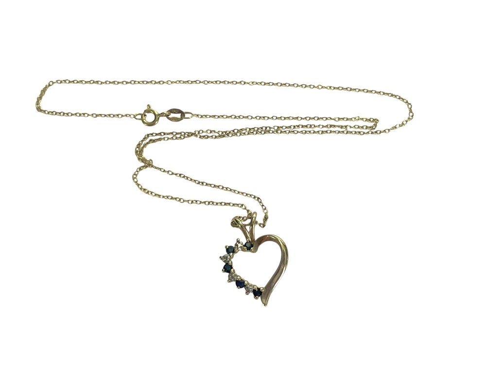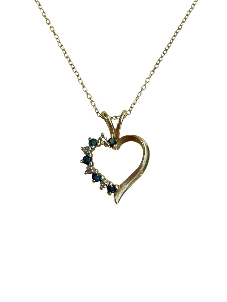 Sapphire Heart Pendant Necklace, Gold Over Sterling ~ 3.4 grams