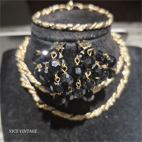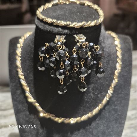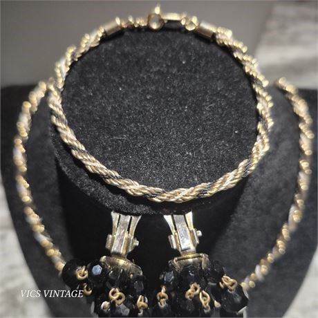 Vintage Black / Gold twist Necklace & Bracelet + Earrings ~ 3 PCs.[VC]