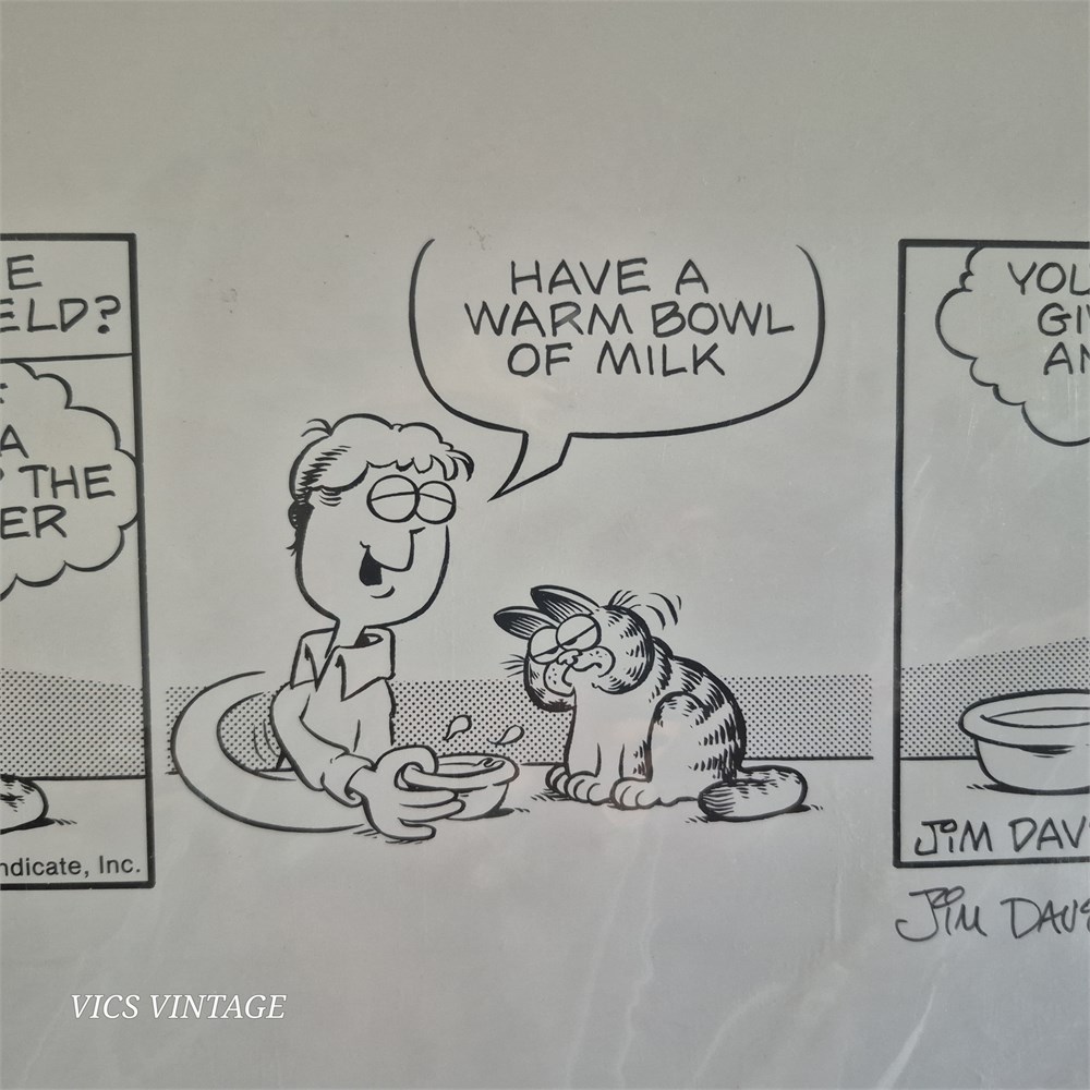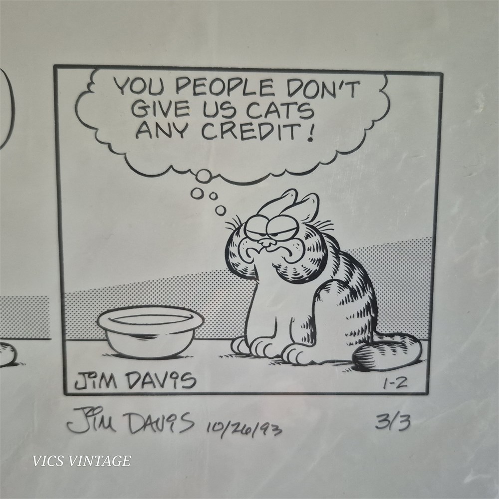 Original signed JIM DAVIS "Garfield tryptic artwork" ~ 10/1993 [VC]