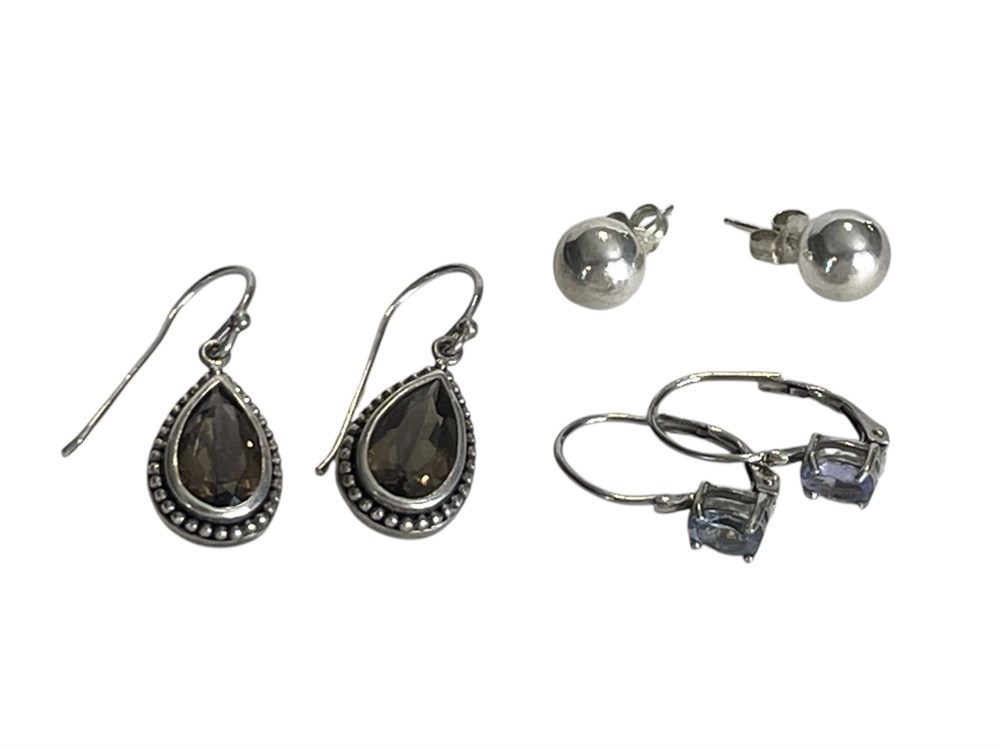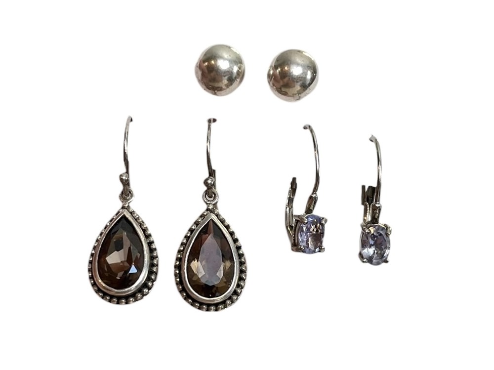 3 Pairs of Sterling Silver Earrings ~ 7.8 grams