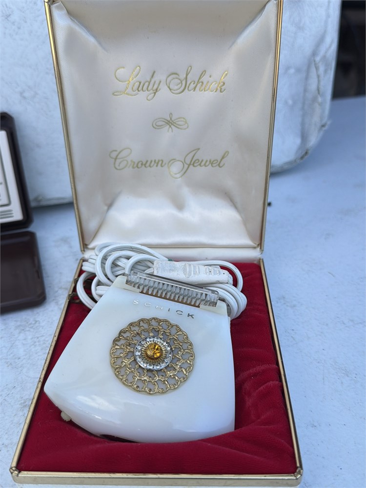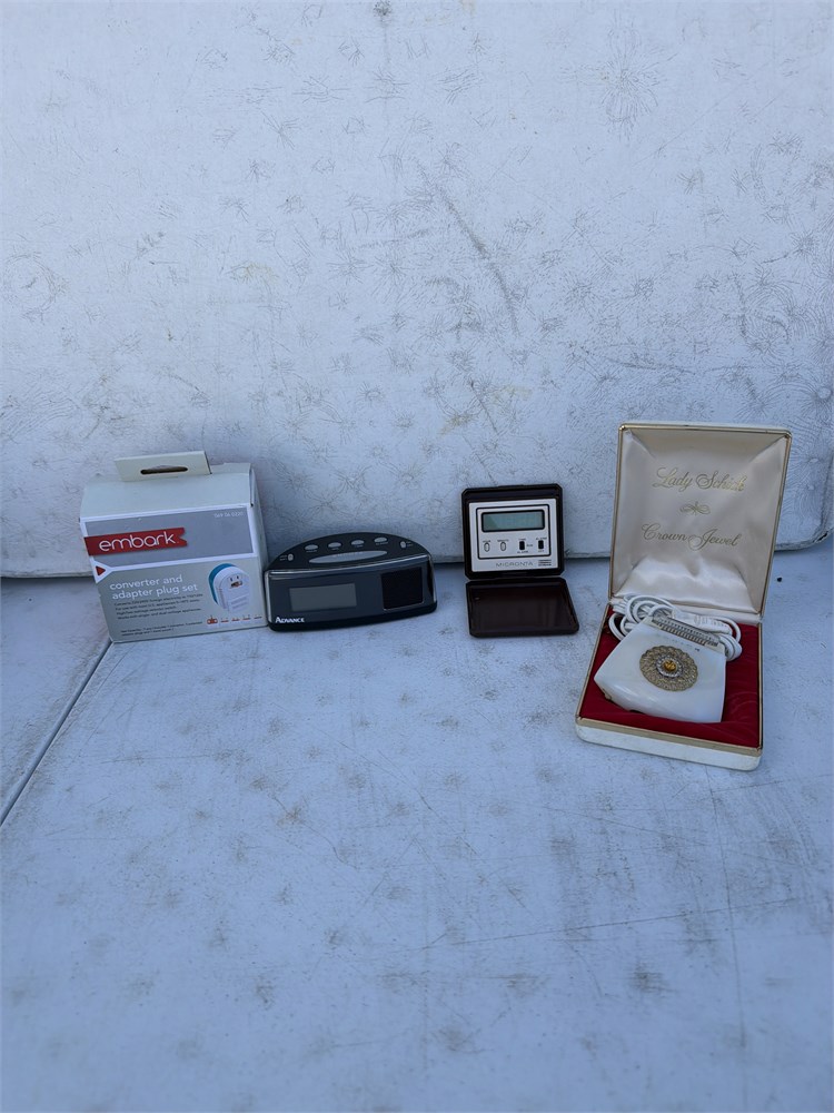 Lady Schick Crown jewel, electric ranger pearl white Micronta alarm clock, Advance Alarm clock and embark  converter Adapter Plugged set