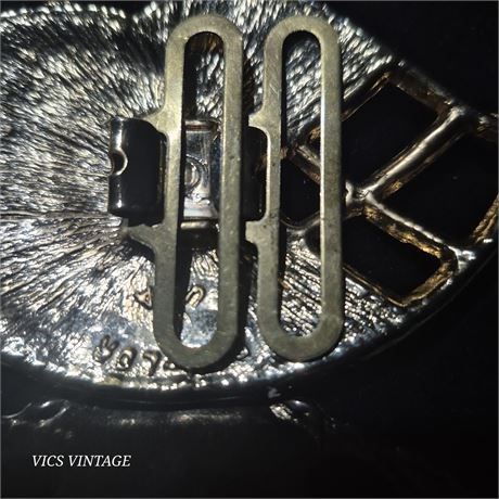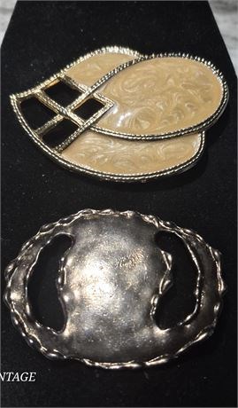 Pair of Deco BELT BUCKLES ~ enamel and bronze [VC]
