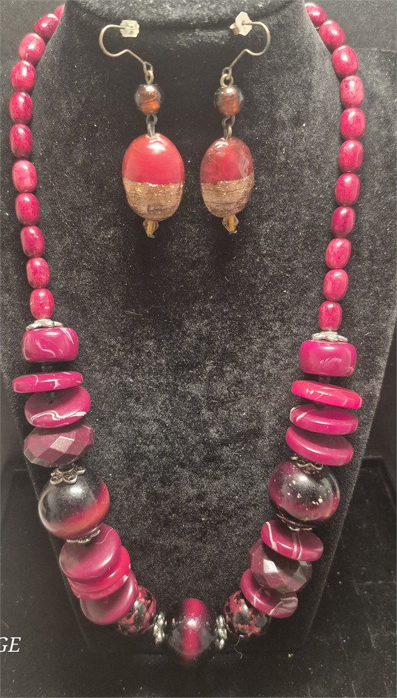 Stunning fashion red bead Necklace & matching teardrop Earrings [VC]