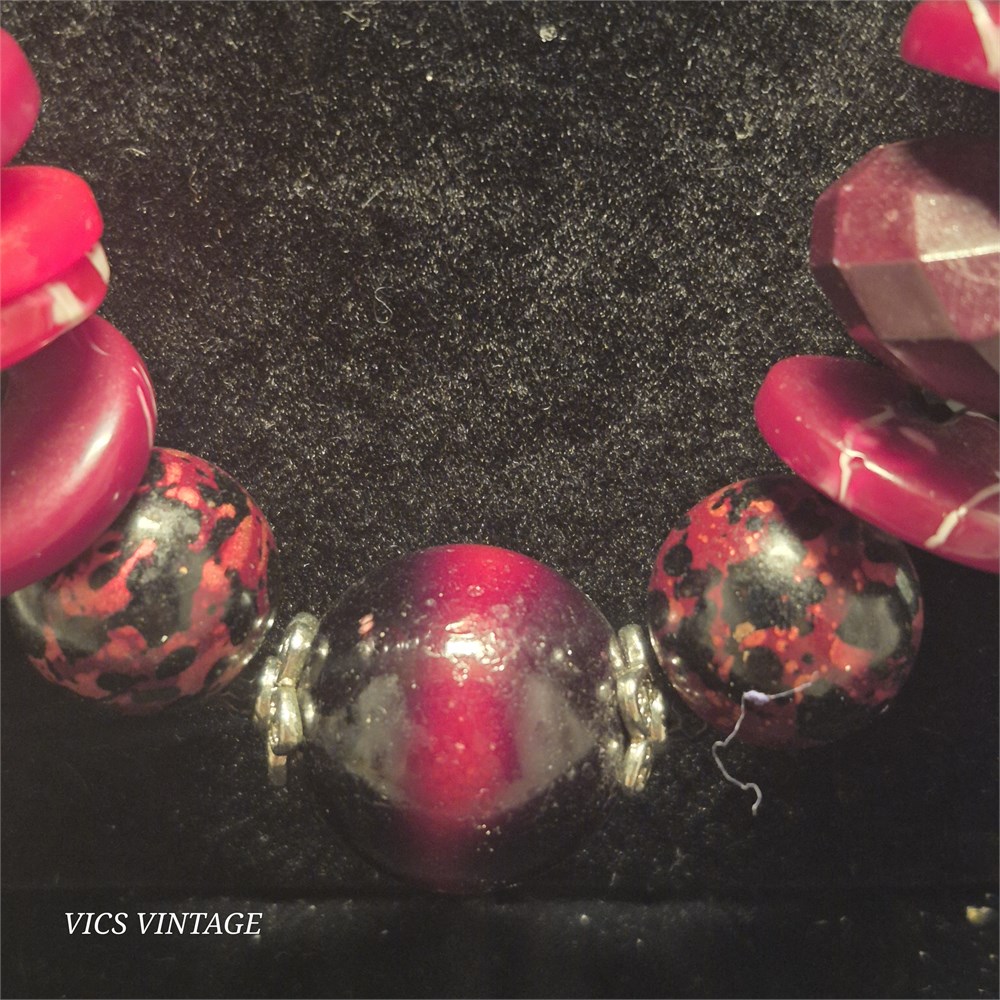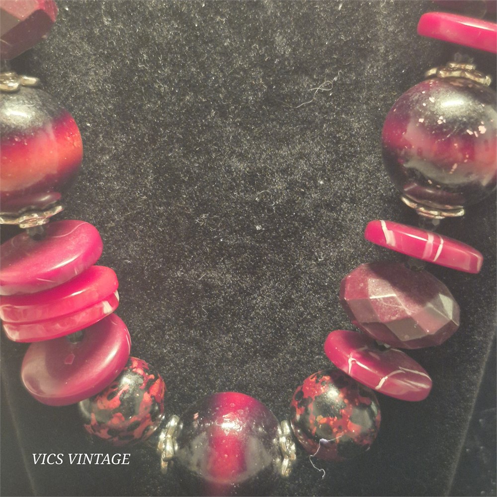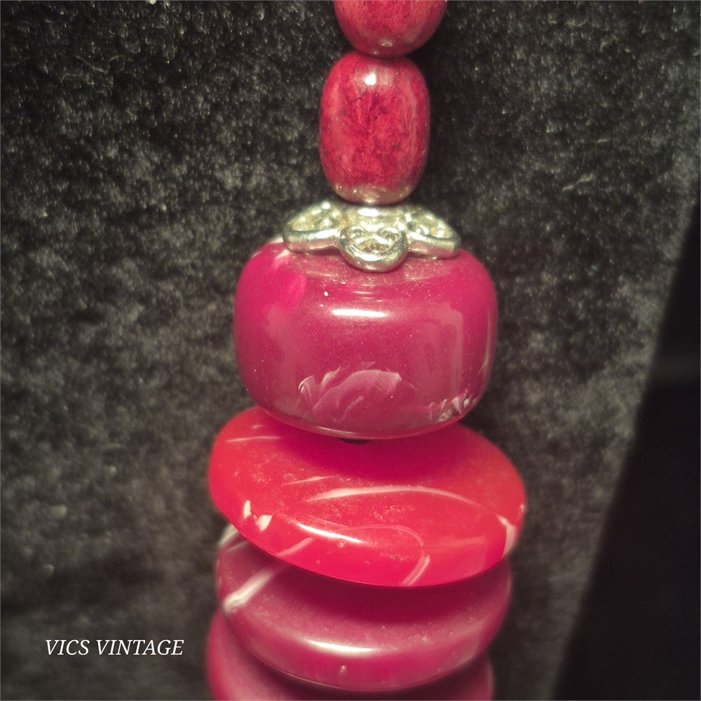 > necklace is asst. size large beads separated by metal findings and spacer beads tied