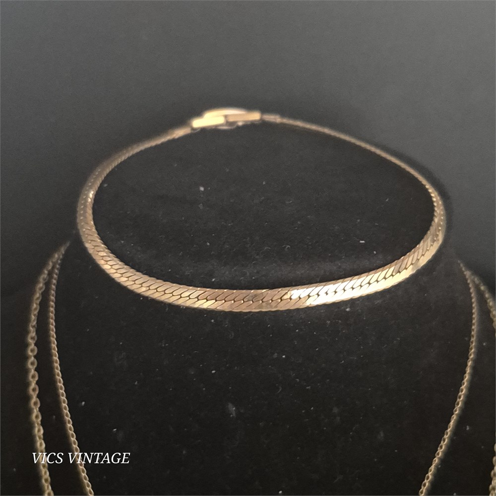 Vintage lot of 3 Goldtone ~ 2 Necklaces / Bracelet [VC]