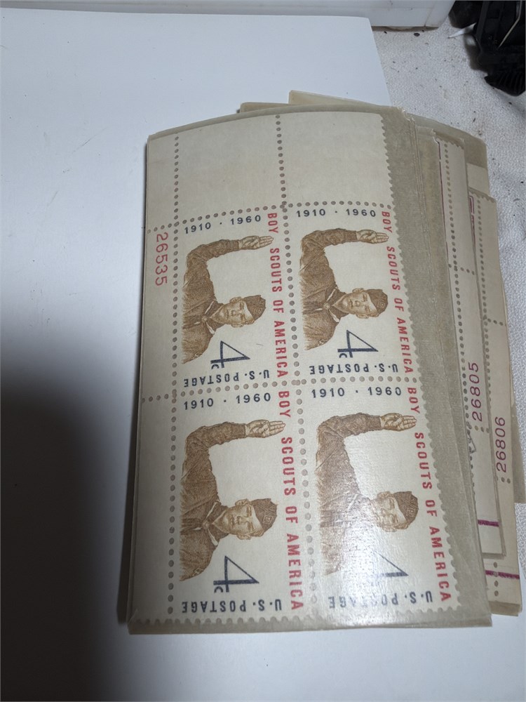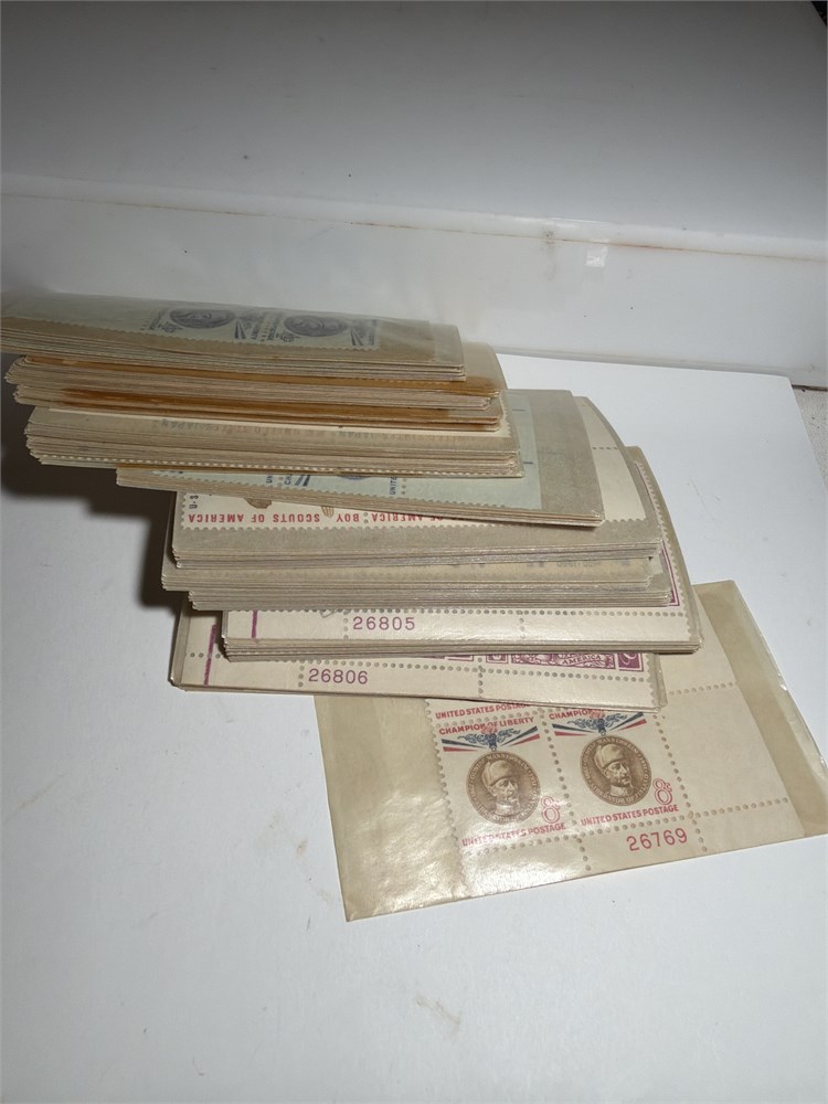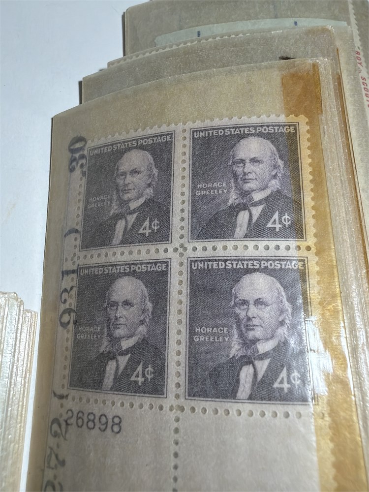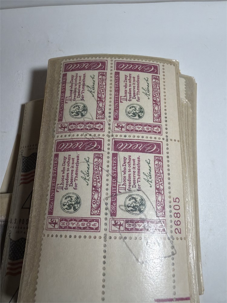 Vintage four cents stamps all uncirculated 300-400 hundreds too many count and maybe even more too many to count