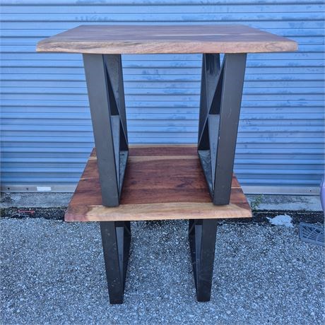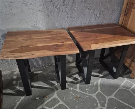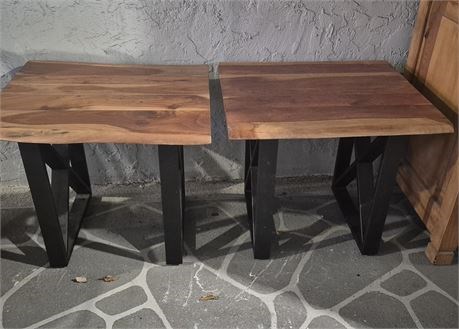 Pair of "Live Edge" Side Tables w/ iron base/legs [VC]