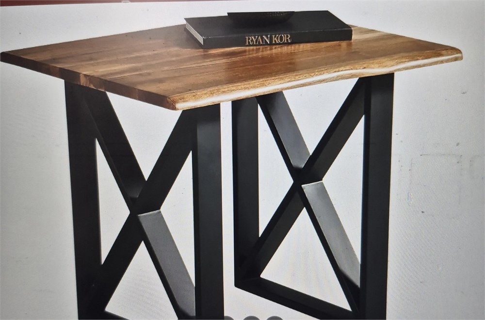 Garnish your space with the industrial style of the Lark end table. Crafted of acacia solids, the tabletop features a natural brown finish that highlights its wood grain detail. A live edge look gives this piece a rustic touch. Rendered in a black finish, its steel legs form an X-frame design that captures attention.