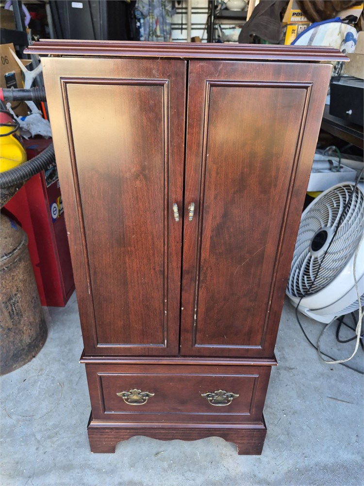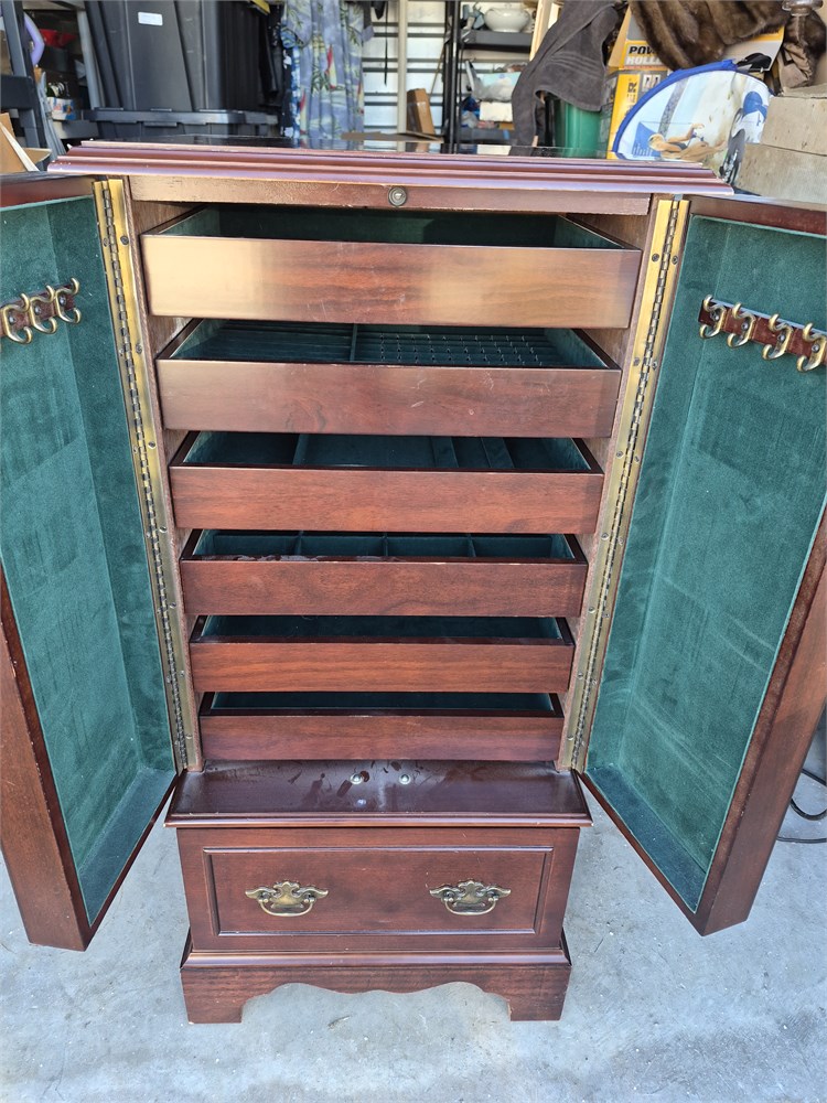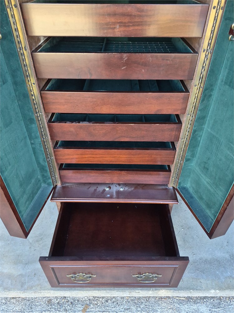 Large jewelry box / stand box stands 38 in tall by 18 wide by 15 inches deep.