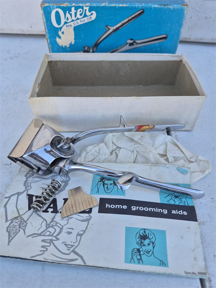 Vintage John Oster Model 110 Manual Hand Held Clipper w/ Box + Accessories.