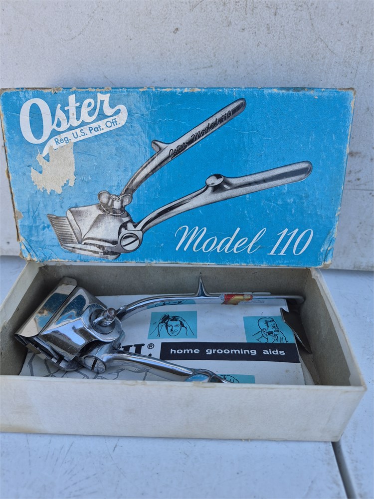 Vintage John Oster Model 110 Manual Hand Held Clipper w/ Box + Accessories (LBD)