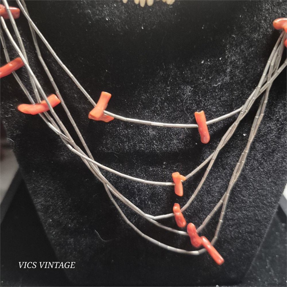 red fetish carved fish on 20" necklace 5 strands
