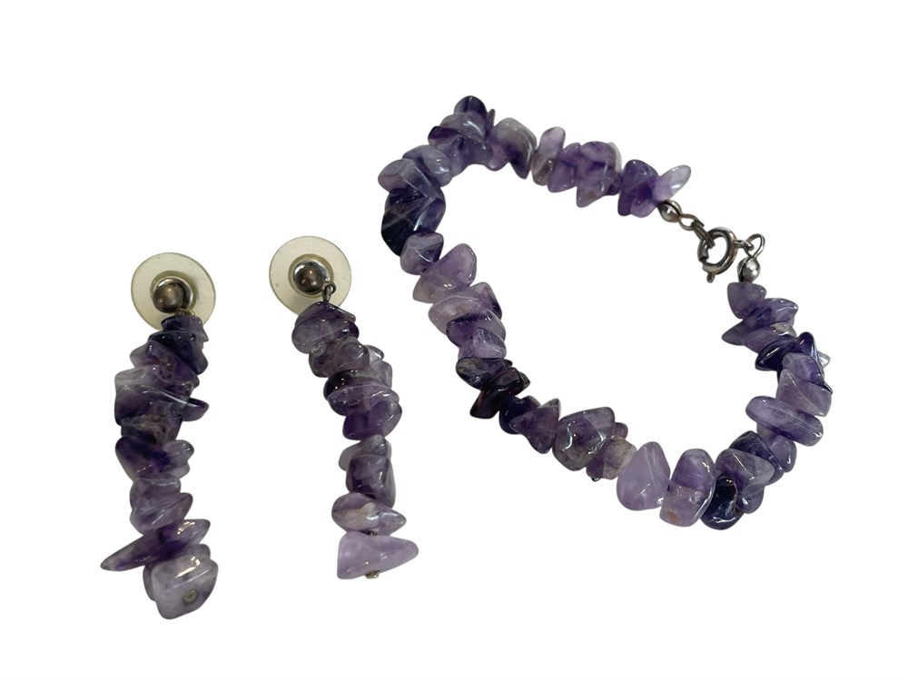 Amethyst Jewelry Set: Necklace, Bracelet, Earrings