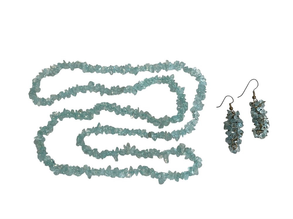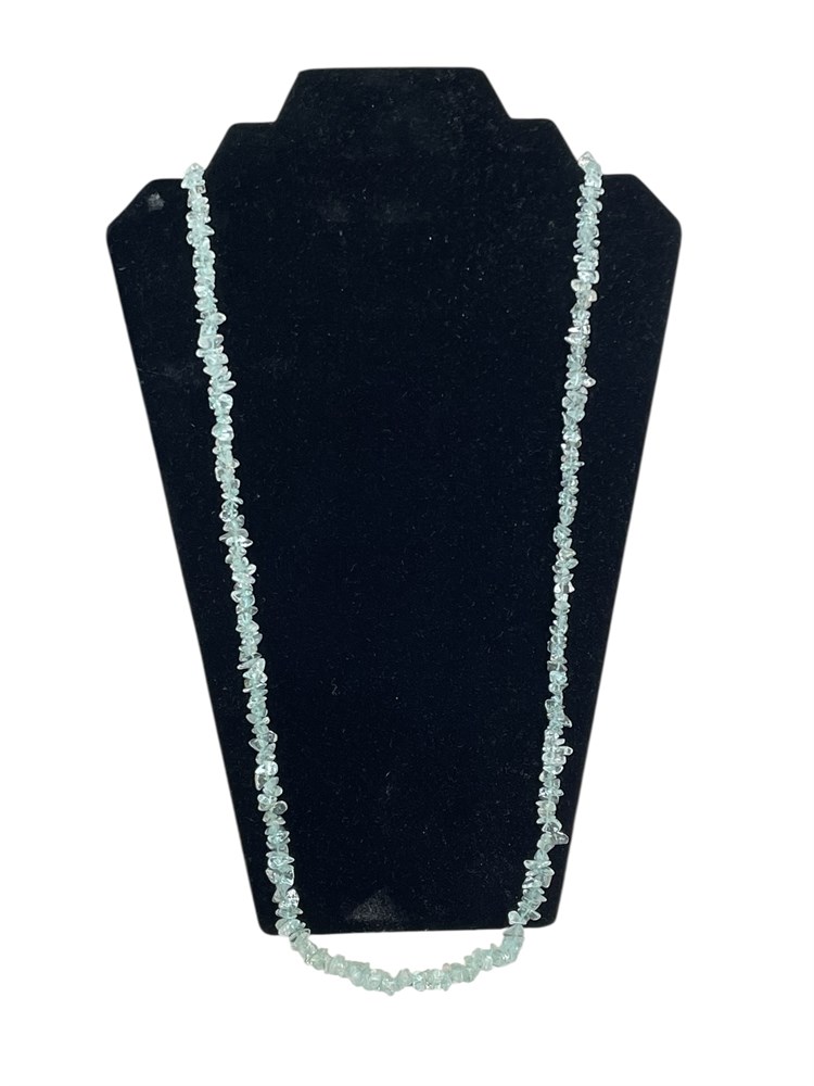 Stone beads, probably aquamarine or similar; necklace is 36"