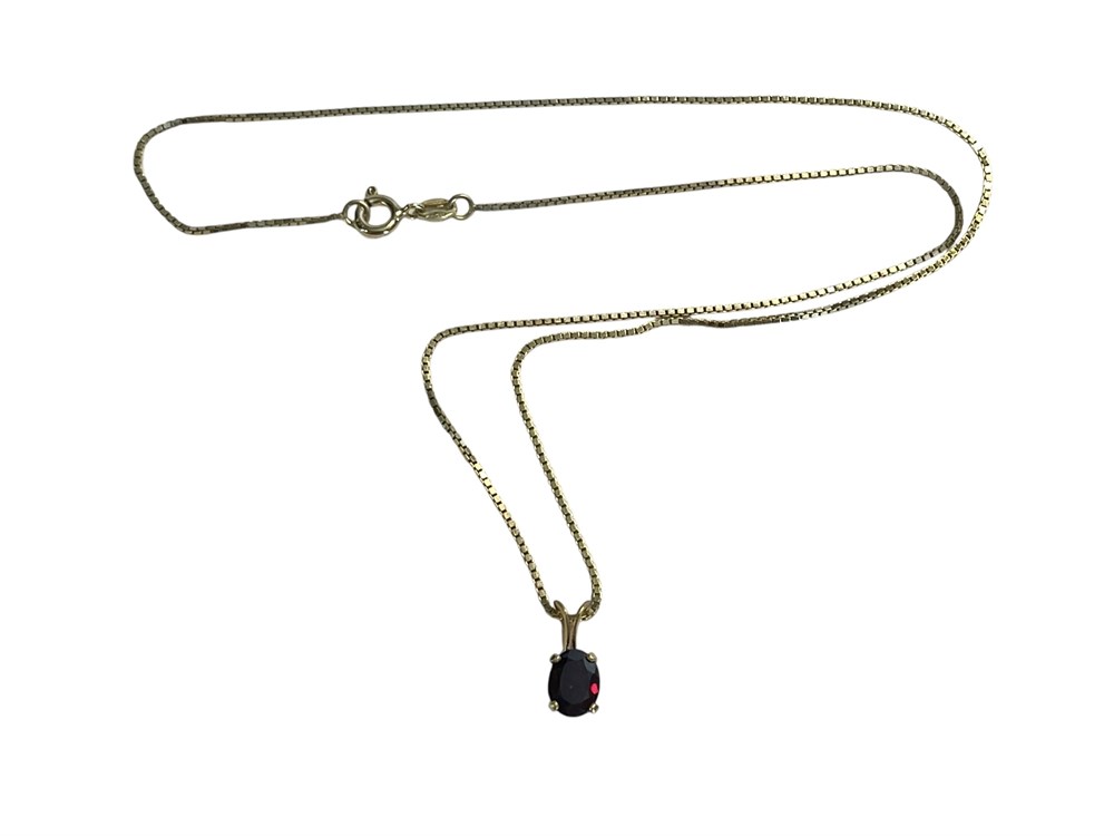 Garnet Gold Filled Pendant on Gold Over Sterling Chain ~ 3.4 grams