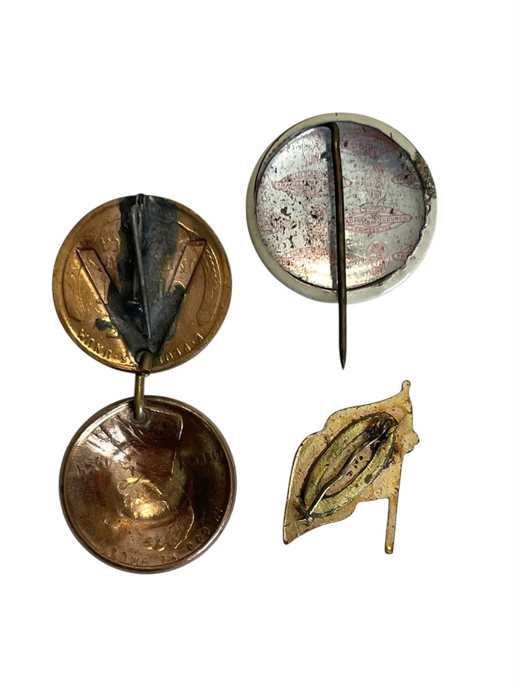 USO, American Flag, and WWII Victory Penny Pins