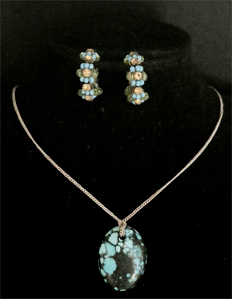 Sterling silver Turquoise Pendant With Chain 18" & Earrings to match