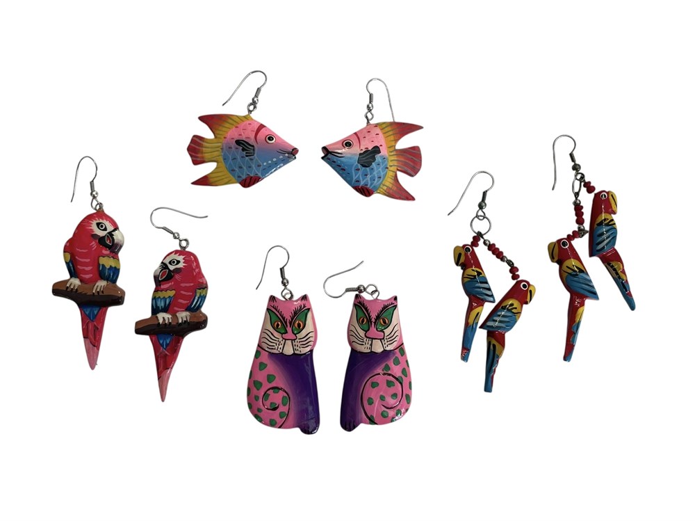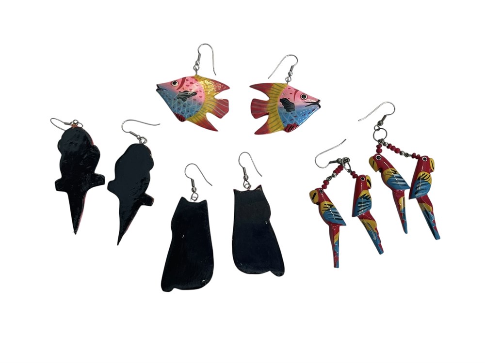 Parrot, Fish, and Cat Earrings