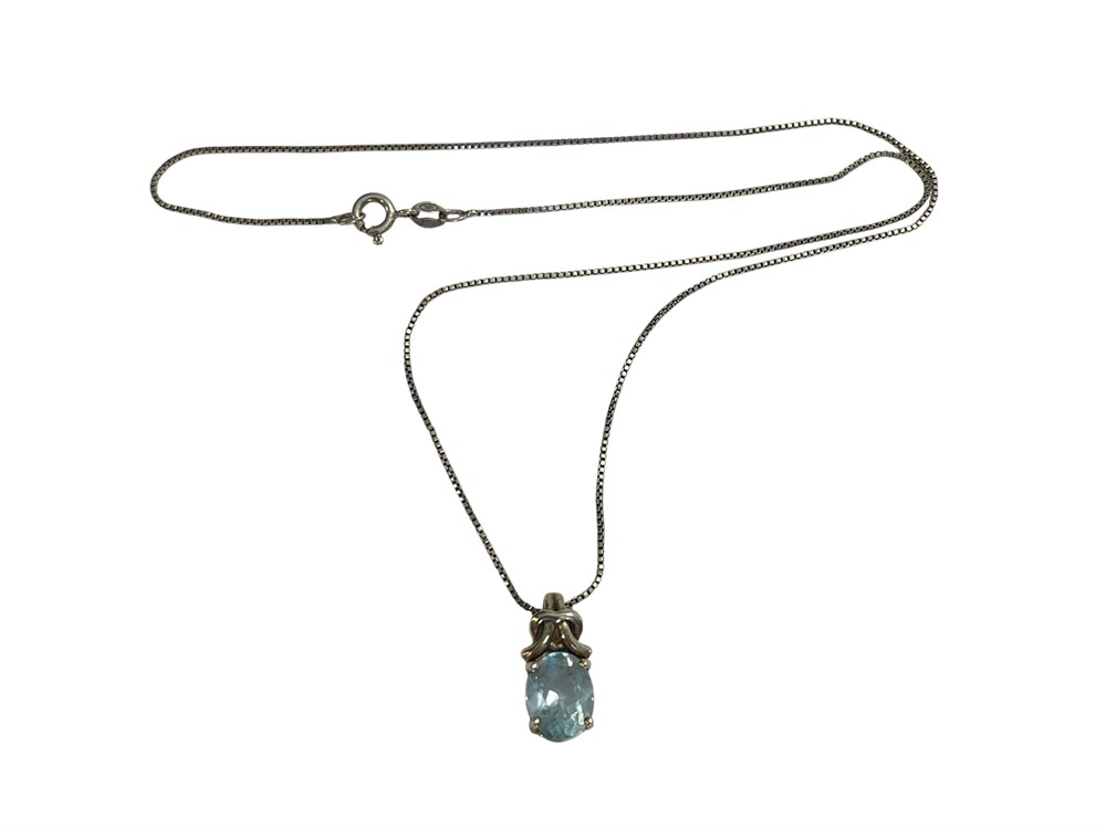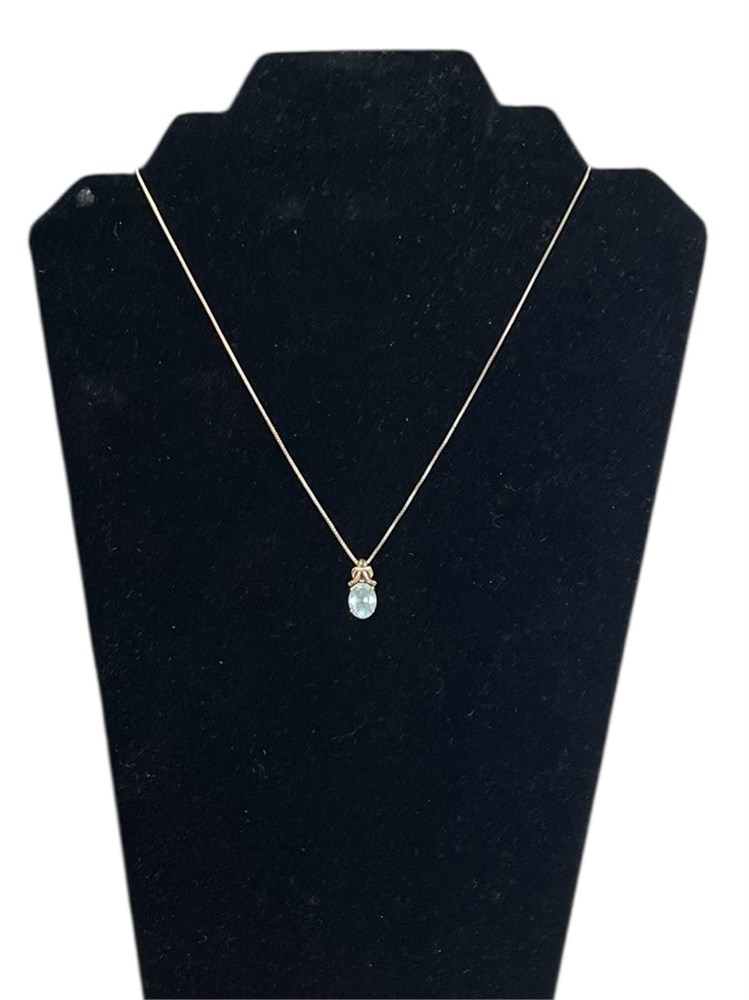 Blue Topaz Pendant Necklace, Sterling Silver ~ 4.1 grams