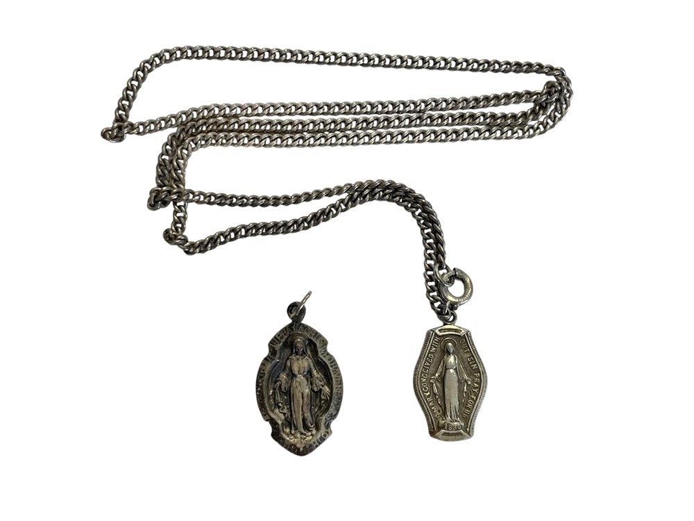Sterling Silver Chain and Religious Medallions ~ 13.2 grams