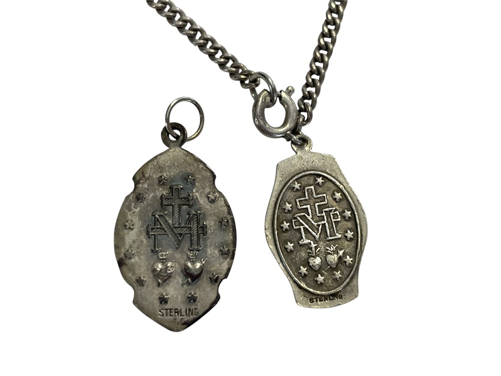 Chain and both medallions are marked Sterling.
