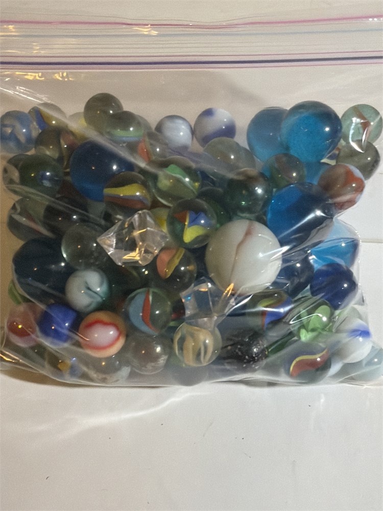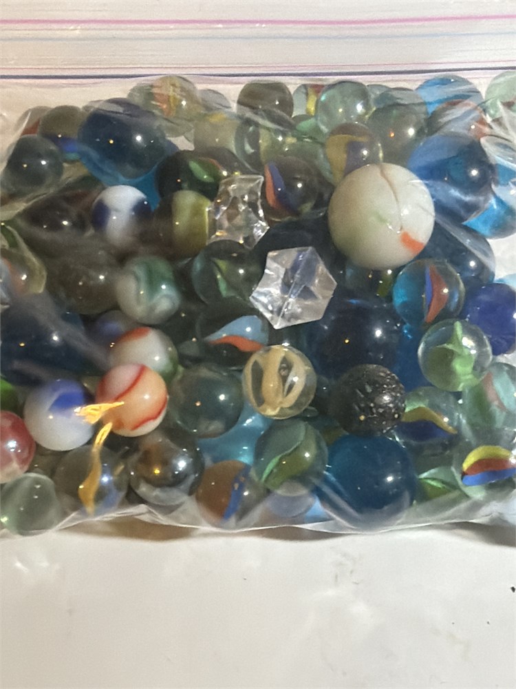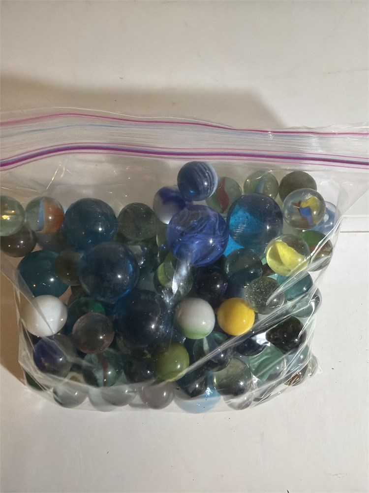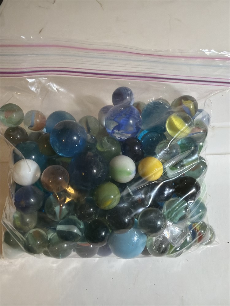 Assortment of marbles old ones newer ones middle-aged ones very full Ziploc