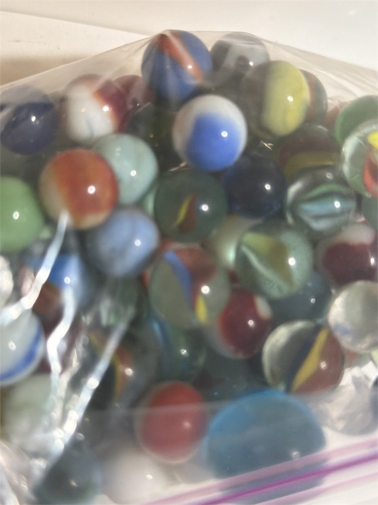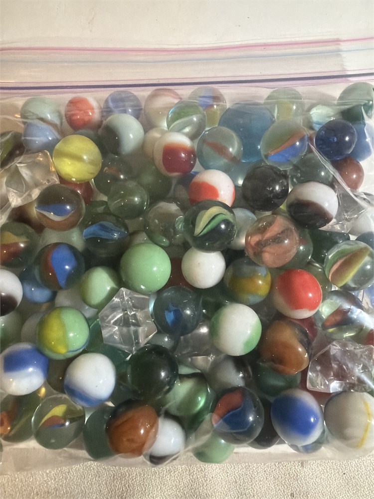 Assortment of marbles old ones newer ones middle-aged ones very full Ziploc