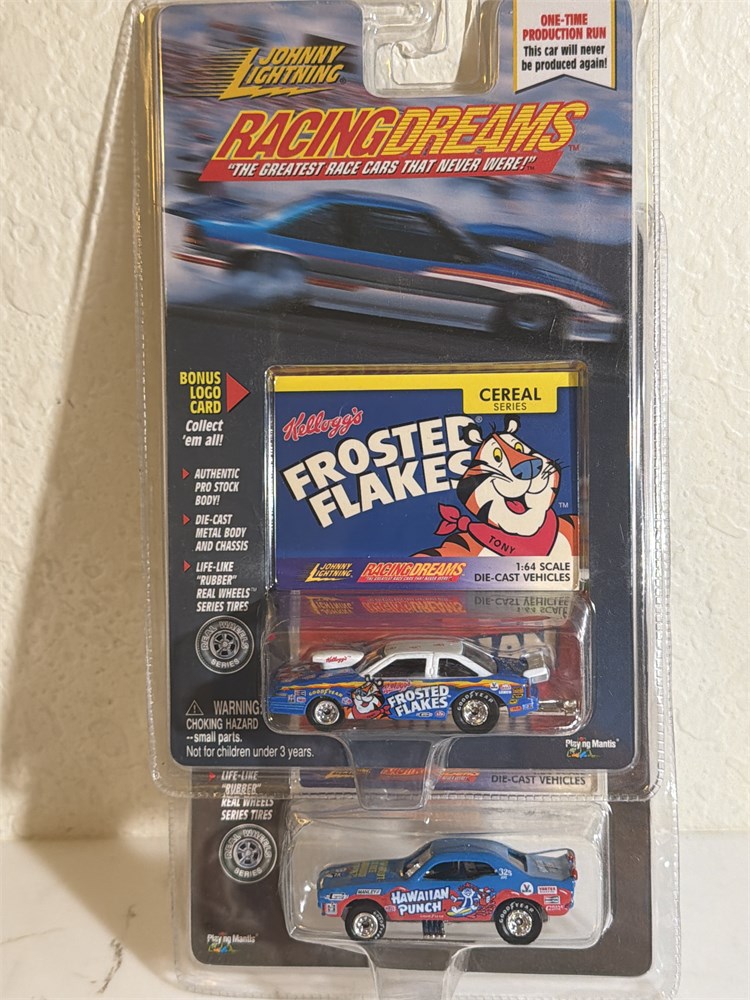 Johnny, lightning racing dreams frosted flakes pro stock and Hawaiian punch money car all brand new in the original packaging