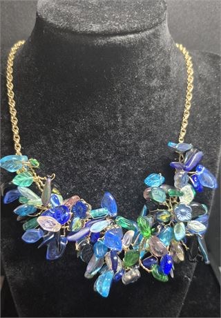 Vintage MONET Cha-Cha Necklace & Japan Cha-Cha Bracelet Blue 1980s [v]