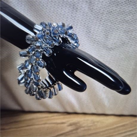 Vintage MONET Cha-Cha Necklace & Vintage Cha-Cha Japan Stretchable Bracelet Black and clear silver tone