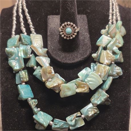 MOP chip dyed beads Necklace & Ring