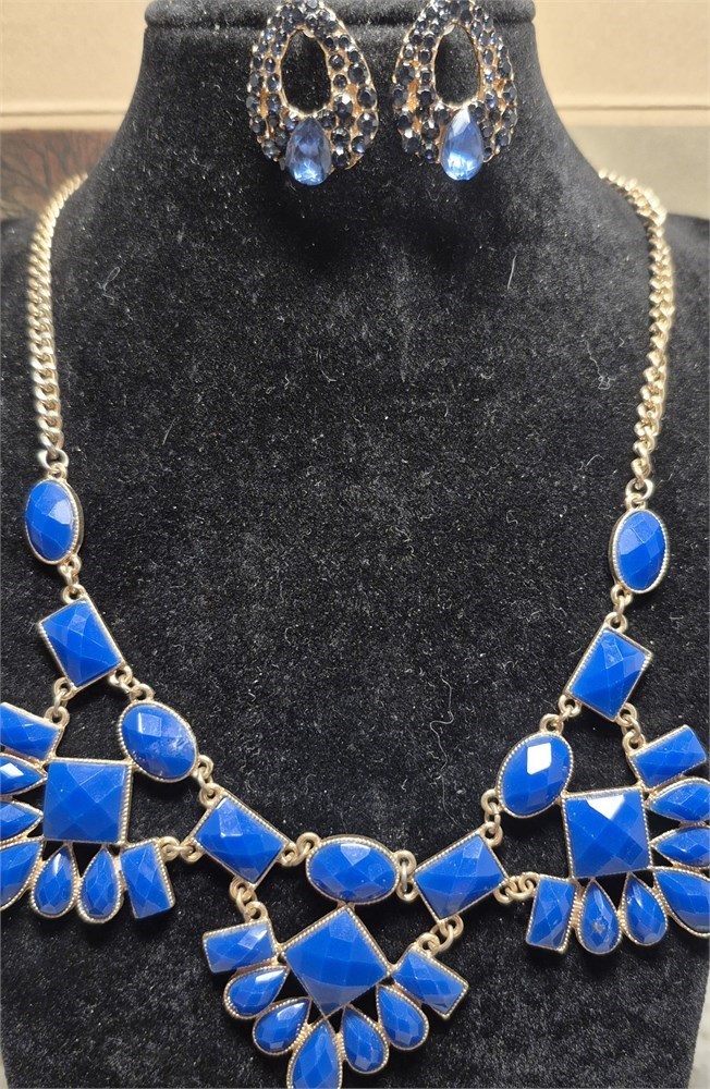 Lia Sophia Cobalt on gold frame Necklace ^ Earring combo [v]