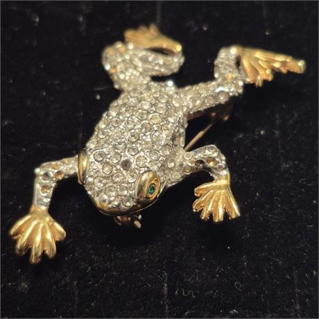 > Rhinestone FROG, emerald green eyes, gold feet...pin perfect