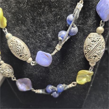 Vintage gold tone Etched Station Links~ Art Deco 1990s & Dyed Stone chips [v]