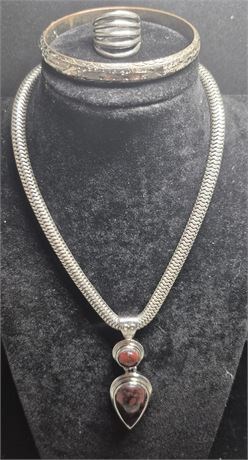 Stunning set : Cabochon pendant on Snake Chain/ 18k GP Bracelet / Ring
