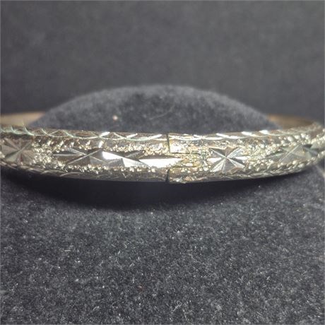 >Vintage 18k-GP/ 925 Sterling Silver Etched Bangle Bracelet w/snap closure