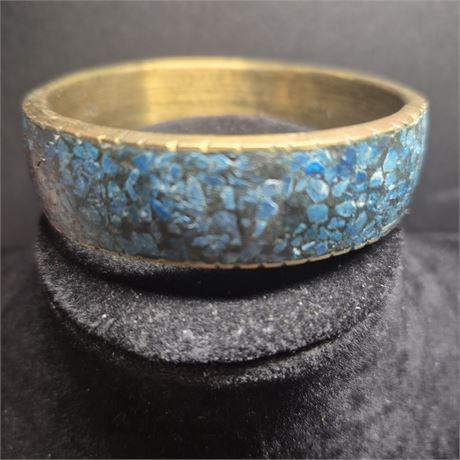 Vintage Brass Bangle Bracelet Featuring a Crushed Blue Stone Inlay [v]