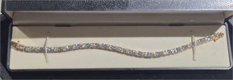 14K Gold Plated TENNIS BRACELET w/ Azure CZ stones [NIB] [v]