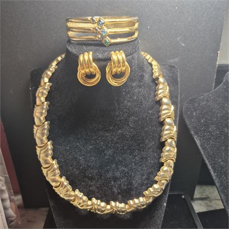 Vtg. set of 4 gold tone Jewels ~ necklace/cuff / earrings