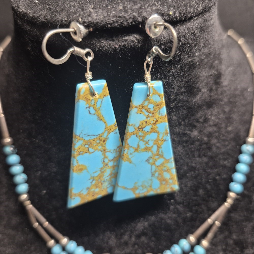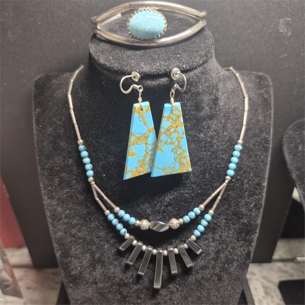 Vintage TURQUOISE set ~  Necklace / Bracelet / celluloid Earrings