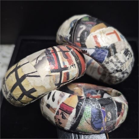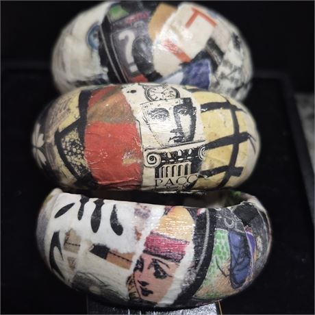 3 Handmade Decoupage BRACELETS ~ designed from vintage Ads [v]