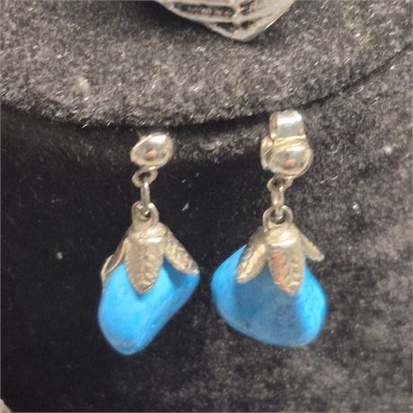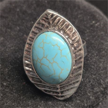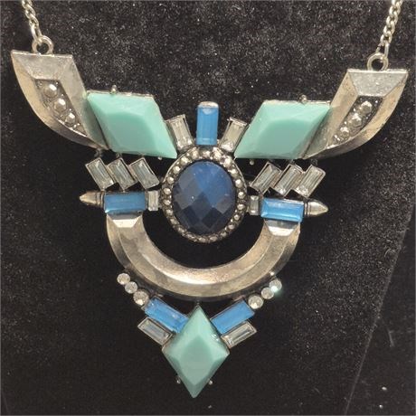 Vintage blue big bold bib necklace, & matching RING / Earrings [v]