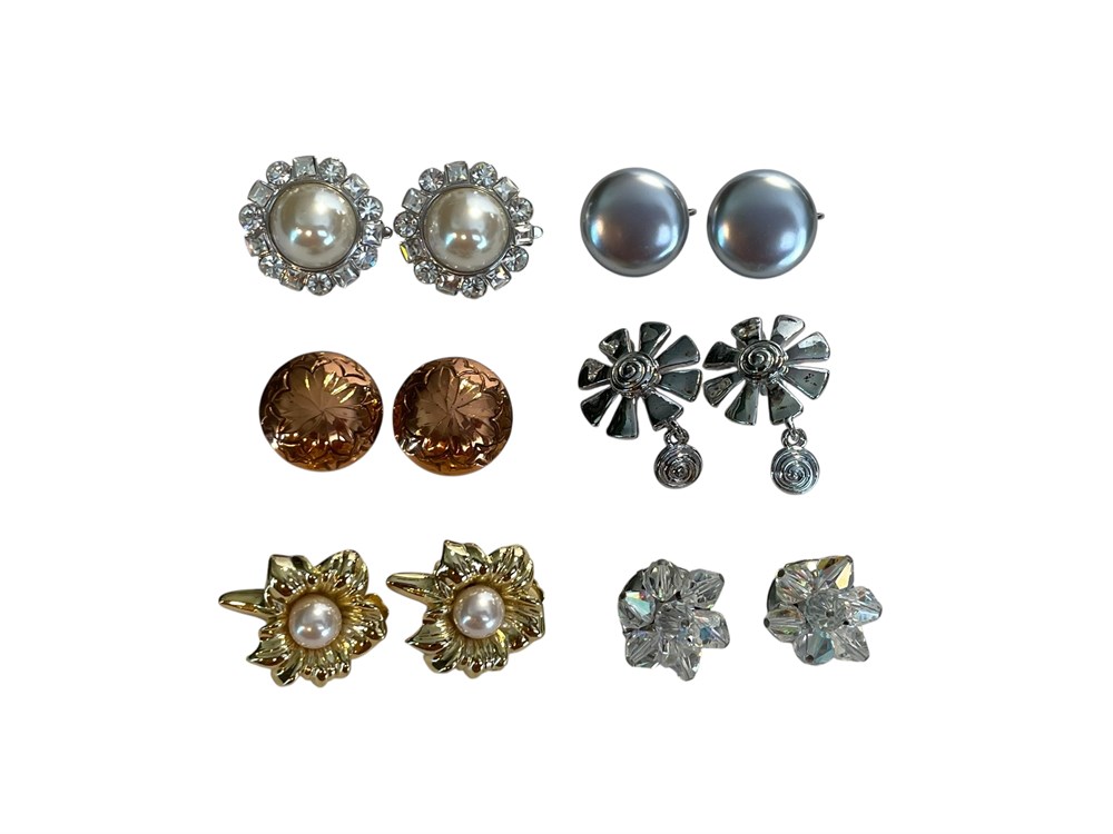 6 Pairs Clip-On Earrings, Some Signed